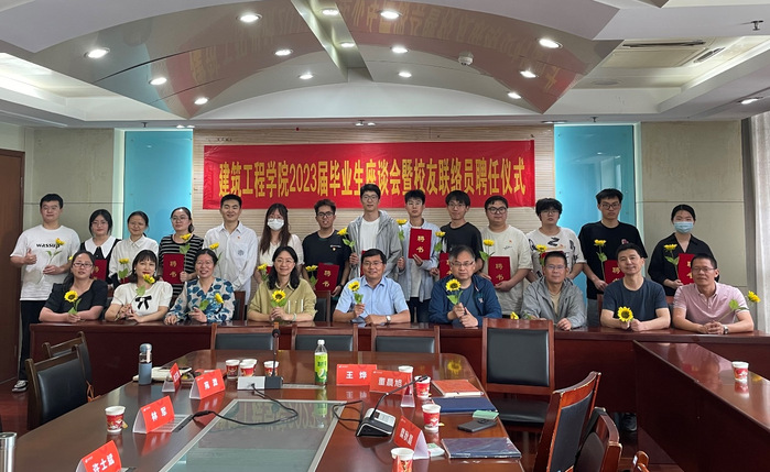 为倾听毕业生声音,了解毕业生对学院发展的意见建议,同时也为进一步做好校友工作,加强校友与校友,校友与母校之间的联系,6月16号下午,建筑工程学院在综合楼8楼会议室召开了2023届毕业生座谈会暨校友联络员聘任仪式。学院党总支书记曹永、副书记徐亚、副院长许士斌、林军、各系主任、毕业班辅导员江蕾、江胜锋及2023届毕业生代表参加了本次活动,会议由第二党支部书记仲青主持。