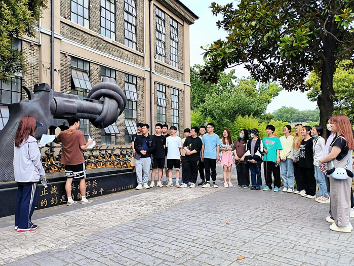 金陵机器制造局是中国民族工业先驱,是南京第一座近代机械化工厂,也是中国四大兵工厂之一,素有“中国民族军事工业摇篮”,也是中国最大的近现代工业建筑群。在班长和团支书的讲解下,班级同学了解到金陵制造局旧址至今仍留有不同年代独具特色的各类建筑达六十余栋,丰富的工业遗产承载着行业和城市的历史记忆和文化积淀,见证了中国民族军事工业百年兴衰史。通过一座座建筑,一尊尊雕塑,大家切身体会到中国军事工业的发展壮大。重温红色记忆,进一步体会到革命先辈们高尚的爱国情操,在思想上和心理上受到深刻洗礼。历史因铭记而永恒,精神因传承而发扬。参观走访后,同学们纷纷表示:作为新时代的青年,不能忘却革命历史,以史为鉴,以先烈们为榜样,从历史文化中汲取智慧和力量,自觉传承和弘扬改革者的精神。