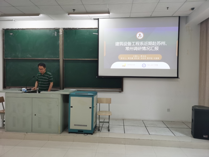 蒋玉龙老师汇报了近期建筑设备工程系赴苏州、常州调研的情况,重点讲述了土建类专业数字化技术的应用、建筑环境与能源应用工程本科专业的市场需求、学生就业升学、校企深层合作等内容。