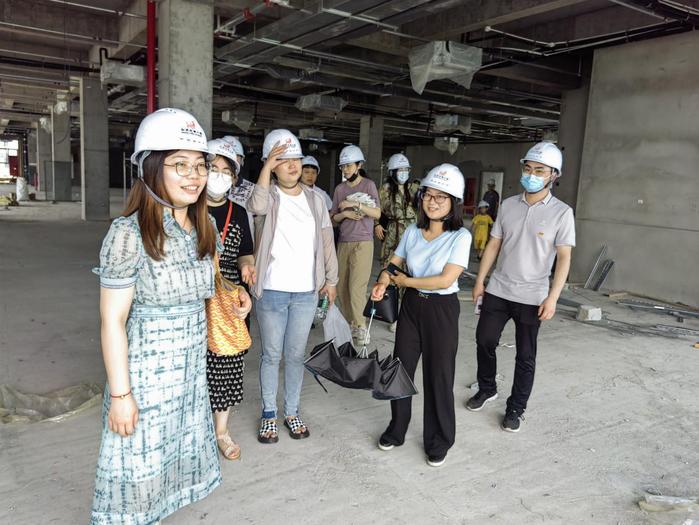 刚踏进新校区,映入眼帘的是施工现场的繁忙景象,施工队正在紧锣密鼓地推进项目施工建设。在工程建设中心,基建处时庆龙老师带领大家观看了新校区宣传片,并向党员们详细介绍了新校区的设计理念、整体规划、功能布局与现阶段建设进展情况等。随后,党员们深入施工现场,参观了新校区一期一标段区域,重点参观了学生宿舍楼的样板间、学生食堂等区域。
