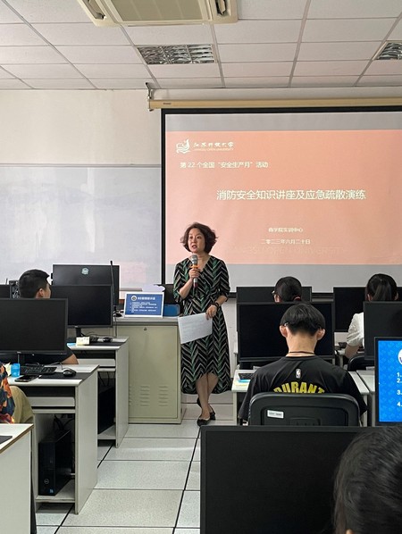 6月20日,商学院联合保卫处组织开展“安全生产月”系列宣教活动,主题是营造“安全生产月”浓厚氛围,提高师生的安全意识和应急逃生能力,做到“人人讲安全,个个会应急”。保卫处处长左克军、商学院副院长朱长春、副书记丁晓华、实训中心主任许力文以及辅导员老师、实训中心教师、保卫处人员和商学院班委、学生代表共50多人参加了本次活动。