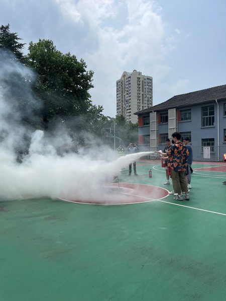 左克军给同学们做了消防安全知识讲座,主要分为消防安全意识提升、灭火器分类使用、消火栓使用。左克军强调,消防工作以预防为主,防消结合,要抓住火灾初起阶段的时机,及时开展灭火工作。他详细讲解了灭火器、消火栓的使用方法,以及疏散逃生的注意事项。在保卫处的协助下,学生们进行了火场应急疏散逃生演练,在篮球场实操了灭火器的使用。