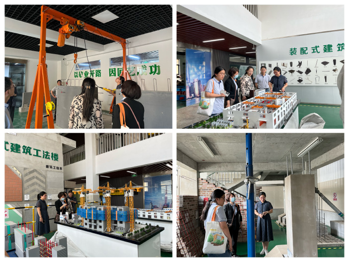 调研组一行在卢艳的陪同下深入建筑工程系实训基地,实地考察了VR智慧建筑互动体验中心、招投标沙盘模拟职业体验馆、给排水智能楼宇实训室、数字化测量实训室、虚拟仿真实训室、BIM数字化虚拟仿真实训中心、装配式建筑构件制作与安装实训中心以及建筑装饰施工实训中心。之后,黎雅乐与李勇就江苏开放大学办学体系共建共享实验室的路径进行交流。李勇表示,建筑工程系是学校的重点系部,希望未来与江苏开放大学建筑工程学院开展更深层次交流,以共享实验室为契机,以专业建设为纽带,增强两地师生的互动,同时利用各自专业优势和资源优势互进互促,进一步带动两地行业发展。黎雅乐充分肯定该想法,并就党建共建的合作思路提出建议方案,表示希望进一步整合办学系统资源,加快推进线下教学的落地,合力培养高素质技能型本科人才。