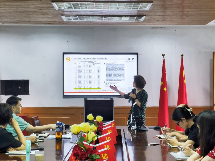 董昕灵副书记指出,就业工作不是某一方之事,而是需要全体班主任、辅导员相互配合,强化沟通合作,对就业数据进行及时有效地反馈。同时她强调了2023年学院目标责任制考核中就业工作相关内容,鼓励各位老师行动起来,做好全力冲刺的准备。