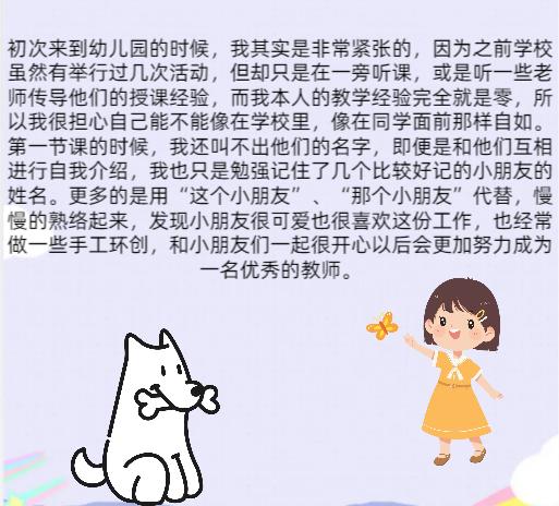 教育学院开放学生在专业实践中,学习了基本幼师技能,如弹、唱、跳、说、写、玩等,也掌握了面对突发情况解决问题、策划幼儿园环创活动的本领,以期为未来工作做好充分准备。下面展示一下教育学院开放学生的部分实践成果。
