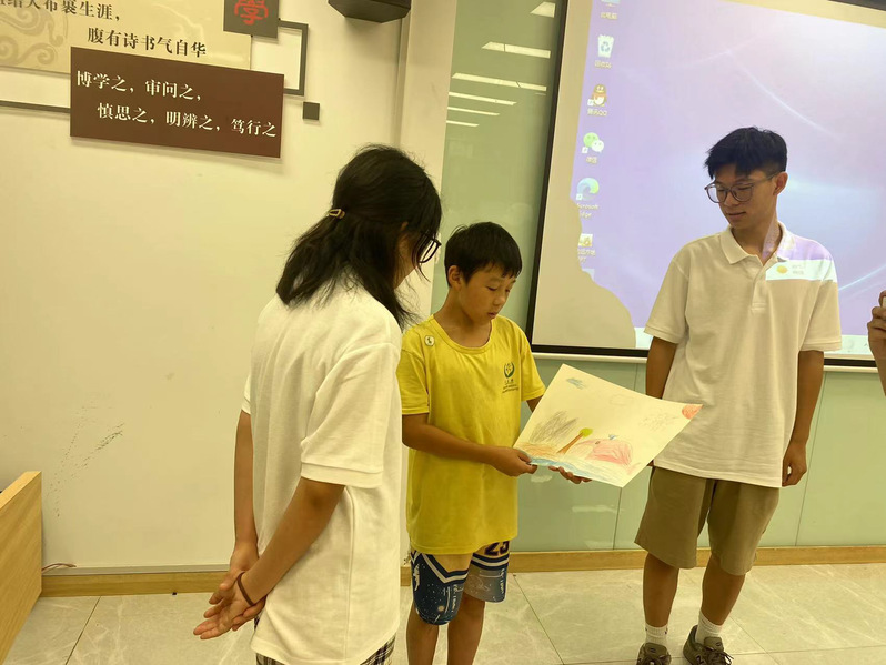 此次课程分为“我想去的地方”和“做时间的主人”两节课程,课程前期由大学生心理健康协会同学和社团指导老师沈静、丘熠琪共同设计。“我想去的地方”课上,黄梦瑜组织小朋友通过绘画、分享等环节,让学生们在活动中探索自己想要去的地方,分享自己感受;“做时间的主人”课上,陈欣雨通过让大家猜谜的方式导入时间的概念,然后通过体验一分钟和视频的方式了解一分钟,最后通过时间圆饼图让大家更直观的感受时间,做好自己的时间规划。
