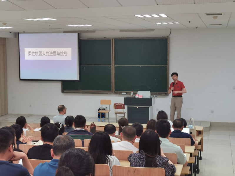 为提升教师的专业素养,增强学院发展的内驱力,7月6日上午,信息工程学院于教学楼201教室召开全院教职工专题培训活动。本次活动有幸邀请到中国科学技术大学陈小平教授作题为《智能机器人的新挑战、新进展》的学术报告,活动由学院院长朱祎主持。