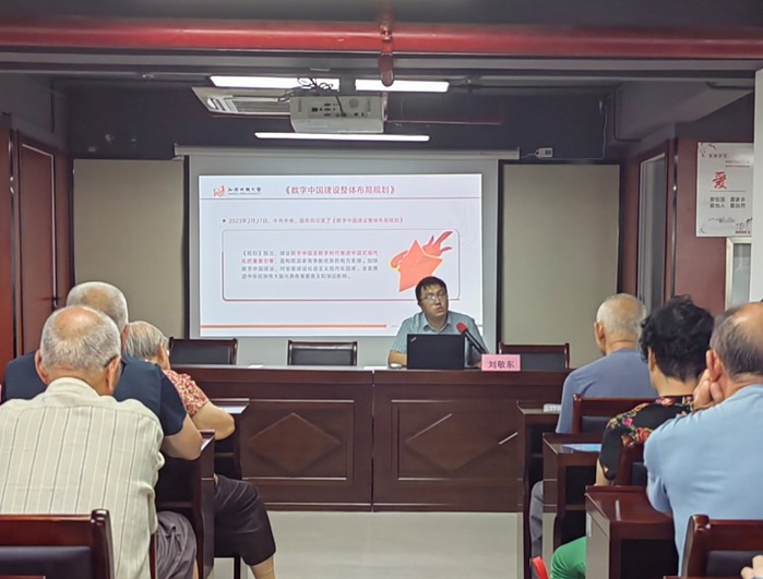 8月16日上午,马克思主义学院教师刘敬东受邀赴秦淮区光华路街道紫杨佳园社区,以“不断做强做优做大我国数字经济”为题,为社区党员讲授专题党课,紫杨佳园社区的老党员代表、企业党务工作者代表50余人参加学习。党课由紫杨佳园社区党委副书记佘钰主持。