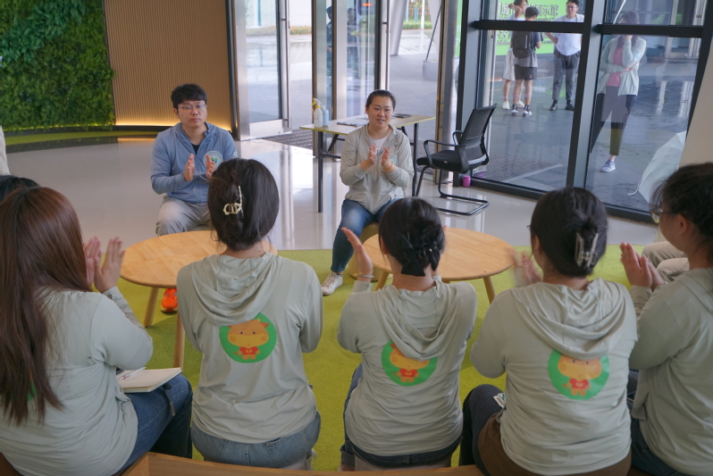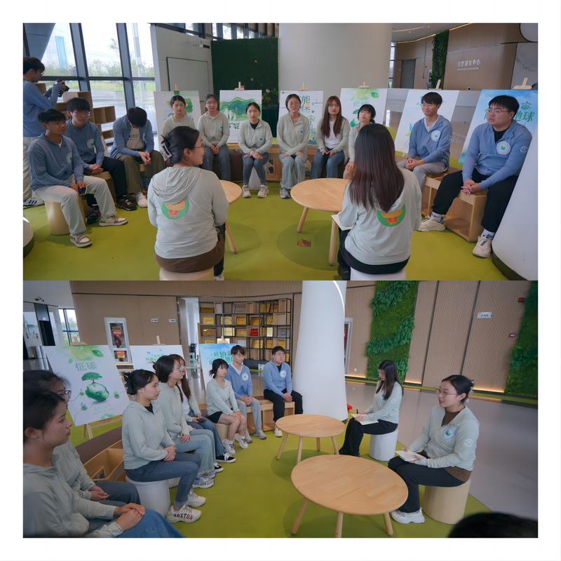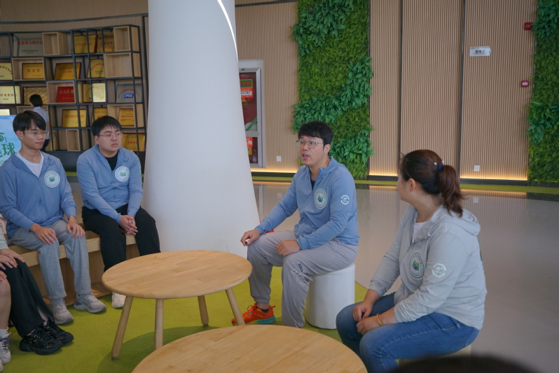 参观结束后,实践队员们围坐在青年分享区,聆听来自22风景园林的张欣平同学和22环艺的刘文慧同学的《“无废城市”让生活更美好》主题思政课。两位同学结合观摩感悟,分享徐州“无废城市”建设的特色和亮点,通过废活性炭、餐厨垃圾、医用废塑料等在循环产业园中被“吃干榨净”,培育更多的“无废细胞”新典范,逐步实现以科技解锁低碳生活,共建无废绿色生活。