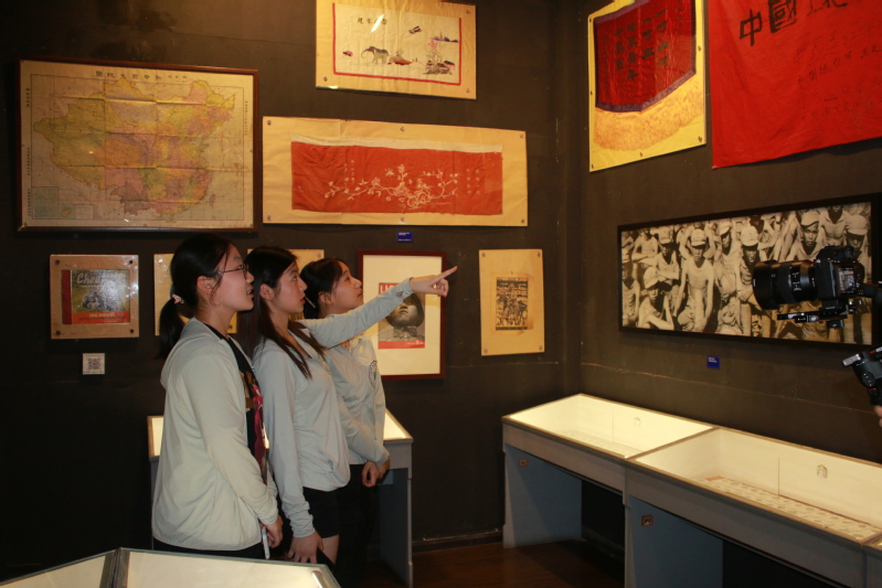 在吴馆长的引导下,实践队员们参观了“1937·南京记忆”南京保卫战史实展、“不愿做奴隶的人们”抗战老兵资料展、“典籍里的红色中国”中国共产党革命文献展。战亡士兵的头盔、为支持抗日募捐的银行凭证、抗敌自卫的中正剑、被截获的日军电台、满目疮痍的南京图片,一幕幕抗战历史重现在同学们眼前,一件件红色文物在沉痛“说话”,铭记历史守望和平,缅怀先烈开创未来。