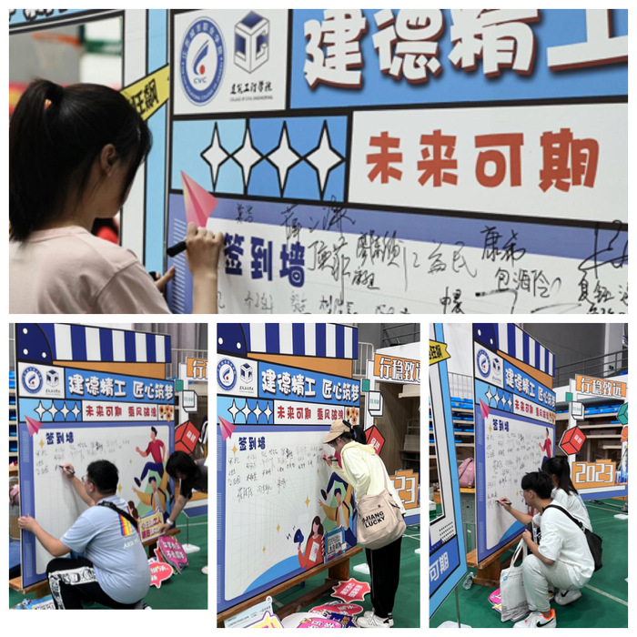 为了让新生们尽快适应大学生活,假期里学院领导和系部老师们为各位萌新推荐适读书籍,将入学教育前移,帮助新生养成良好的阅读习惯;学院还精心准备了印有学校、学院文化的纪念品,将校园文化的宣贯、对新生尽早树立人生目标的期望融入到迎新环节中,激发新同学爱国爱校、专业报国的豪迈热情。窗间过马,似水流年,时光慢递,寄予深许。学院鼓励新生给三年后的自己写张明信片,写下初入大学的梦想、愿望和期许。卡片虽小,却承载着书生意气的方酋;台历虽薄,却映射了似水流年的芳华,建工院充满巧思的文创见面礼,向新生们表达了最诚挚的祝福。此外,学院还为新生准备了合照墙和签名墙,创造满满的仪式感让新生和家人们留下美好的回忆。
