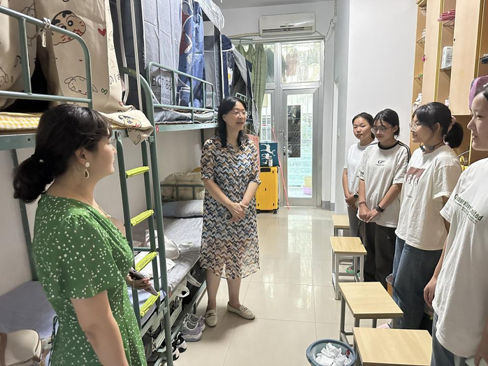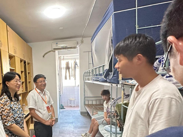 家长会结束后,院领导及新生班主任、辅导员一同走访学生宿舍,送达真切的关怀与问候。走访过程中,老师们同新生们进行了亲切的交谈,仔细询问新生进校后的感受,饮食、住宿等各个方面的生活情况,并认真倾听了他们的想法,回答生活、学习上的各种问题。鼓励新生逐步提高自理、自立的能力,希望新生们以积极的心态和良好的面貌尽快适应大学校园生活,习惯大学校园的学习节奏。老师们还细心叮嘱了宿舍用电安全、外出交通安全、人身财产安全等问题。