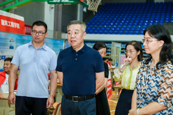 9号,校党委书记荆晅,党委副书记、校长丁荣余,党委副书记牛玉韬,副校长张晓、罗逾兰、杭祝洪等校领导来到应天校区体育馆指导学院迎新工作,了解新生报到和服务保障情况,与新生、家长亲切交谈,确保新生报到各项工作顺利到位。