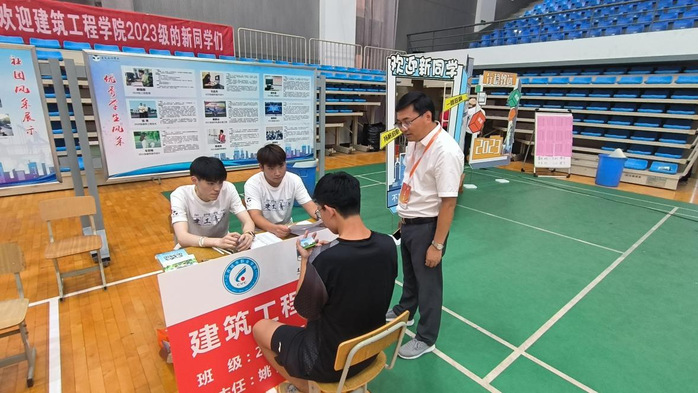 迎新活动各环节的顺利开展,还离不开一抹蓝与红,那是阳光的建工青年学生志愿者团队。从迎新布置到宿舍分配,从场地统筹到现场协调,志愿者、工作人员早早准备就位,统一着装,各司其职,饱含热情地接待新生。只要新生有需要的地方,就有志愿者的身影,他们以实际行动践行奉献、友爱、互助、进步的精神,将我为同学办实事融入到为学弟学妹顺利报到的护航工作中。