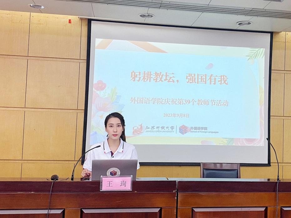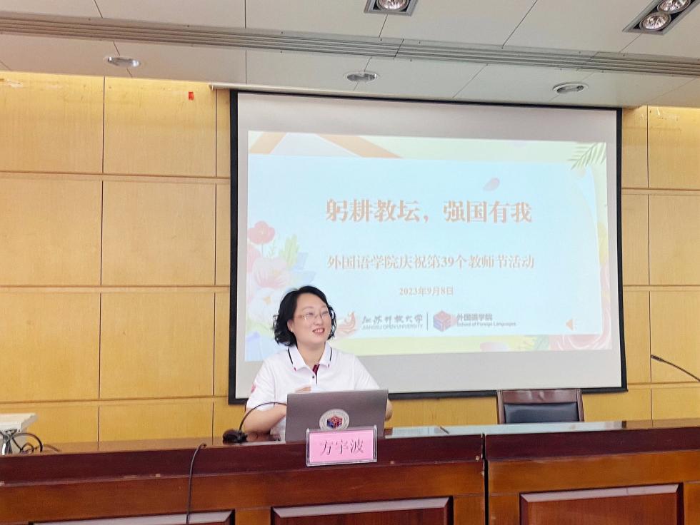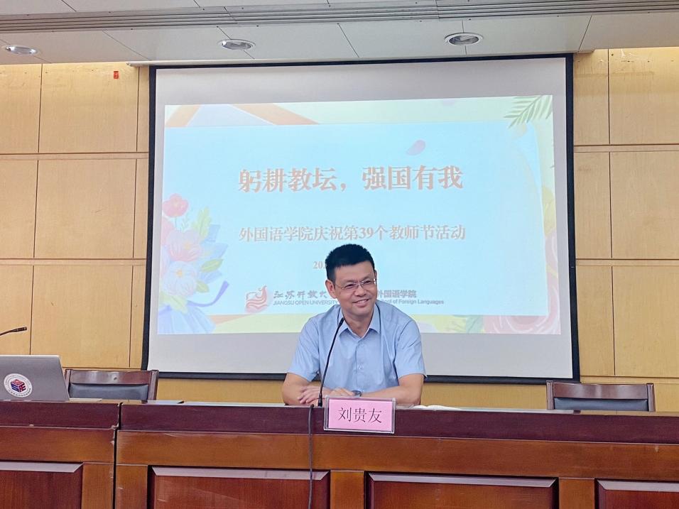 9月8日下午,外国语学院在定淮门图书馆211教室举行主题为“躬耕教坛,强国有我”的教师节庆祝活动。出席活动的有校党委常委、副校长刘贵友同志以及外国语学院全体教职工。活动由外国语学院党总支副书记章琼主持。