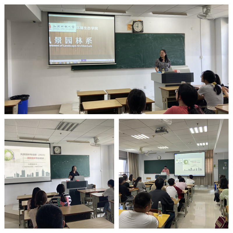 风景园林系的风景园林设计、环境艺术设计、园林技术的专业负责人周琦、仰小东、陈曦三位老师从专业发展定位、课程设置与依据、学生就业方向、学业发展规划、学生在校期间的学习要求与学期教学安排、专业教师的指导要求等方面为学生进行详细讲解,让学生在开学之初就了解了自身专业在祖国的生态文明建设中的重要使命,也了解大学三年所学专业的规划和方向,努力使学生了解专业、向往专业,激发学生学习的动力,教育引导他们在三年里找准自己努力的方向,顺利开启人生新篇章。