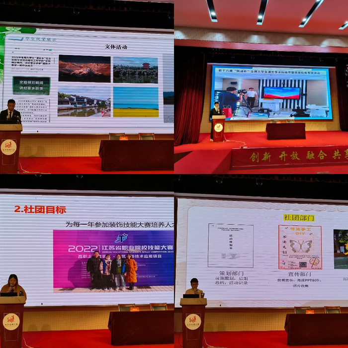 学院“薪火”“双创”社团、建筑装饰技术社团以及凌云书法社的负责人林欣、李静仪、吴奇伟向新生们介绍了各个社团的创办宗旨、取得的成绩以及对未来工作的展望。希望新生多参加各类创新创业比赛及相关培训、讲座和分享会,以赛促学,提升专业素养,勇攀学术高峰。