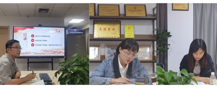 孙雪羽和汤玮健两位同志分别结合工作实际,分享了各自的学习体会。孙雪羽同志认为敢于斗争,开拓进取,是每一位党员教师义不容辞的责任与使命。她从三个方面分享了她的学习体会:“两个确立”的新时代意义;坚决把“两个确立”体现到实际行动中;“赶考”路上从严治学、从严治教。最后,她表示,“作为一名党员教师,要始终保持正视问题的自觉和刀刃向内的勇气,秉持‘赶考’的清醒和坚定,把党的全面领导和党的建设融入教学科研、人才培养各个方面,巩固强化开放教育的鲜亮底色。”汤玮健同志以《深刻领悟“两个确立”的决定性意义,坚定不移推进学校全面从严治党向纵深发展》为题,从支部纪检委员的视角阐述了自己对从严治党的看法。她认为敢于斗争、敢于胜利,始终是党和人民不可战胜的强大精神力量。围绕党的二十大战略部署,在实际开展工作中,要具体化、精准化开展政治监督,着力纠正政治偏差,以严的基调强化正风肃纪,以零容忍态度反腐惩恶,为江苏开放大学高质量发展营造风清气正的政治生态。