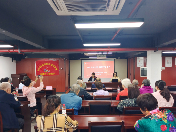 9月25日下午,马克思主义学院办公室主任李欢欢老师赴秦淮区紫杨佳园社区讲授专题党课。形势与政策教研部青年教师刘敬东、紫杨佳园社区的退休党员代表、企业党务工作者代表50余人参加学习。本次党课由紫杨佳园社区党委书记沈云主持。