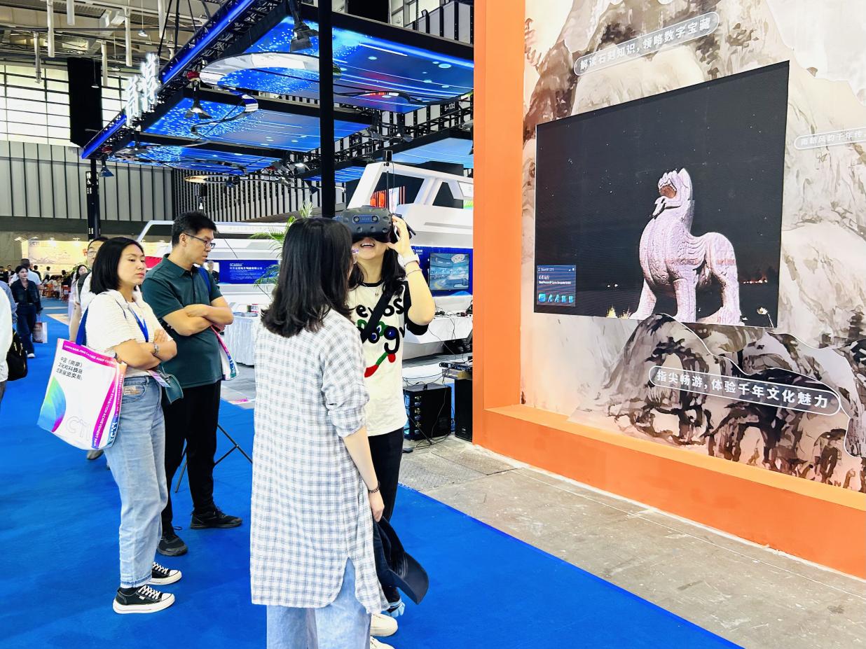 为全面贯彻党的二十大精神,落实二十大报告中提出的“加快建设数字中国”“实施国家文化数字化战略”“实施重大文化产业项目带动战略”等一系列要求,2023年9月21日至23日,由江苏省人民政府指导,江苏省委宣传部、江苏省科学技术厅、江苏省网信办、江苏省文化和旅游厅、江苏省广播电视局、南京市人民政府联合主办的2023中国(南京)文化和科技融合成果展览交易会(简称“融交会”)在南京国际博览中心(元通)隆重举办,艺术学院文化休闲系专任教师孟瑶的文化遗产数字化与3D交互展示项目《南朝石刻元宇宙艺术展》阶段性成果受邀在5号馆A21展区展出,并获观众好评。