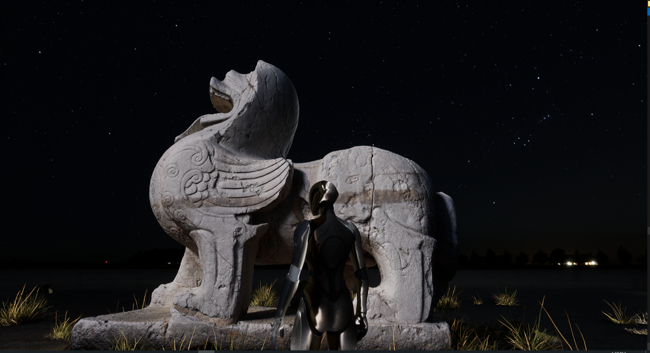 自2023年3月起,孟瑶老师积极调动休闲服务与管理专业学生的学习热情,将《人文景观艺术鉴赏》《展会活动策划》《摄影》等专业课程与前沿科技创新进行结合,并进行探索性实践运用,带领同学们积极投身于文化遗产的数字化保护和3D交互展示的创意创新研究。在融交会展览现场,观众可以通过LED大屏、穿戴VR眼镜等设备沉浸式漫游在南朝时刻的元宇宙世界中,与来自1500年前的大型精美石刻雕像近距离对话,感受中华文化瑰宝的历史与魅力。