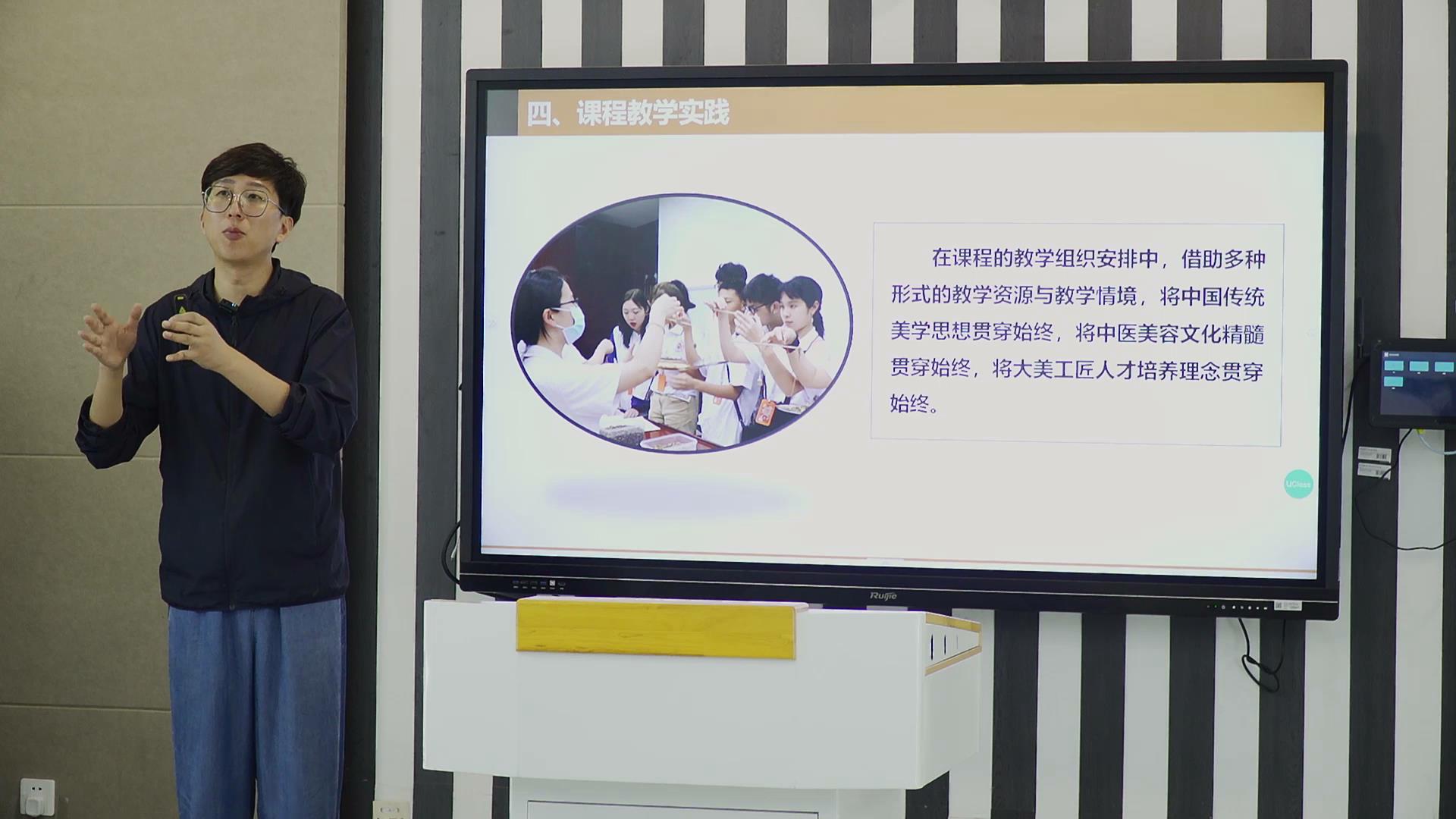 根据教育部职业教育与成人教育司《关于开展2023年职业教育课程思政集体备课的通知》要求,教育部职业院校艺术设计类专业教学指导委员会制订了《全国职业院校文化艺术大类课程思政集体备课会实施方案》,在集体备课环节中,在全国遴选了6个国家级课程思政教学团队进行说课分享与教学展示。教育部职业院校艺术设计类专业教学指导委员会委员、艺术学院副院长王铮领衔的首批课程思政示范课程《中医美容技术》团队入选。