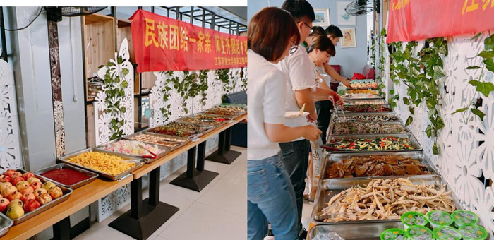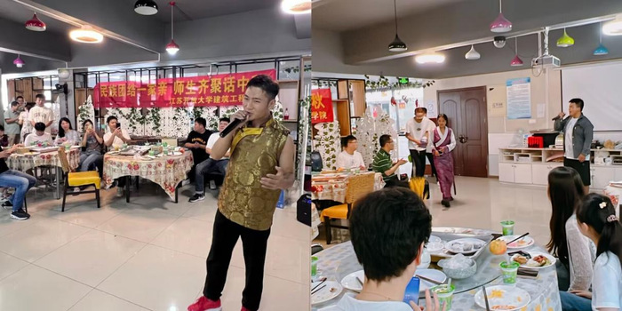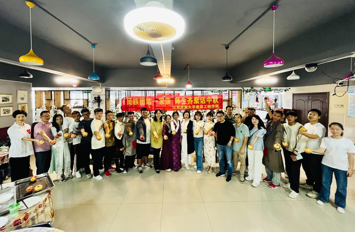 9月27日下午3点,建筑工程学院在应天校区食堂二楼举行了“民族团结一家亲、师生共聚话中秋”为主题的民族团结教育实践活动。少数民族师生们欢聚一堂,共同庆祝中秋佳节。来自仡佬族、回族、藏族、满族、土家族、侗族、苗族等10多个少数民族师生代表与学院第二班主任、老师们欢聚一堂,通过文艺节目表演、手工制作月饼等方式欢庆中秋。