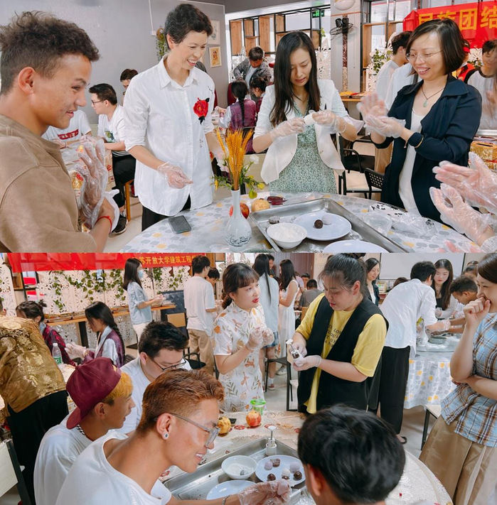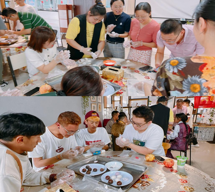 活动中,师生们在面点师的带领下亲手制作了象征团圆的手工冰皮月饼,制皮、包馅、压模,大家热情投入,不仅培养了动手能力,更增进了师生间的情感交流。现场笑语盈盈,每个人脸上洋溢着幸福的笑容,不多时,一个个饱含爱国心、民族情的精美月饼跃然于师生们的掌心,大家纷纷与自己做的月饼合影,来自西藏的尼玛江村同学表示,这是自己第一次手工制作月饼,十分激动和难忘,在学校里感受到了别样的中秋韵味和浓浓的“家”的味道。