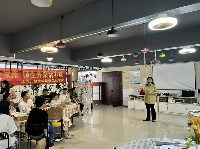 活动尾声,学院党总支副书记徐亚总结发言。她首先代表学院向全体师生送上了节日的祝福,中秋佳节是我国的传统节日,象征着团圆和美好。学院各民族师生团聚在一起共度中秋,活动特别有意义。她指出,中华民族是一个大家庭,民族团结是各族人民的生命线,大家要像石榴籽一样紧紧抱在一起,手足相亲、守望相助;青年学生要有家国情怀,要爱祖国、立鸿志、学本领,争做担当民族复兴大业的新青年,最后她鼓励在场的大一新生们可以带着老师们的美好祝福,利用假期、周末打卡明信片中的南京地标建筑,了解和读懂南京,丰富自己的业余生活,更好地融入这座城市。
