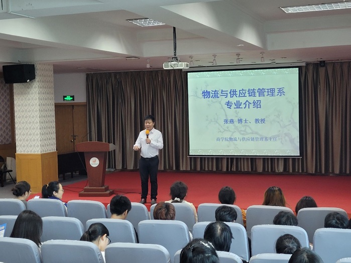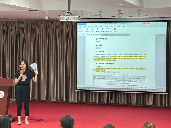 系主任张燕教授以《物流与供应链管理系专业介绍》为题对物流与供应链管理系及专业情况进行了提纲挈领的介绍。随后,党员教师江烨和黄晓娟分别为同学们深度解读了采购与供应管理专业、现代物流管理专业的人才培养方案。