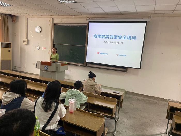 10月9日,商学院营销管理系联合实训中心在阶梯教室1-2开展新生入学教育活动。活动由营销管理系负责人陈向南主持,专业负责人何冬梅、实训中心许力文、营销管理系新生班主任、23级连锁经营与管理专业新生参加了活动。
