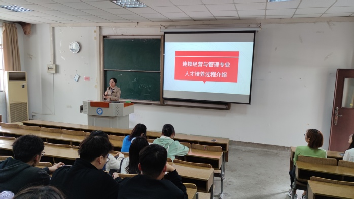 陈向南介绍了营销管理系的基本情况以及开展新生教育活动的重要意义。何冬梅介绍了连锁经营与管理专业的发展历程、教学条件、人才培养、升学就业等方面情况,分析了新时代连锁专业毕业生应具备的专业能力,为新生制定学习目标和计划提出意见和建议。许力文向新生介绍了学院实验室管理规定以及使用实验室需要注意的问题。