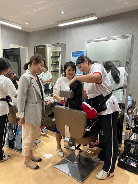 调研团队在崔蓉英的带领下参观了实训室,观摩了浙江省职业技能大赛美容美发项目选手的备赛训练。双方就实训室在课程比赛中的作用、信息化设备的运用和整合等方面进行了交流。崔蓉英介绍,实训室的建设以技能大赛为依托,引进先进设备和工具,让学生在真实的工作环境中锻炼,提升学生在实践中的技术水平和创新能力。