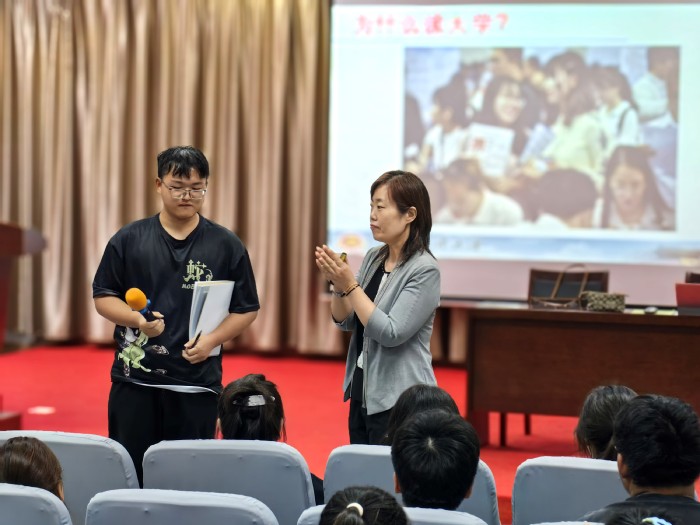 甘诺教授以“我们为什么上大学”为切入点,引发同学们深思,并与在座的同学进行交流互动。她指出,大学是由“稚气”向“成熟”蜕变的过程,是明白人生是由“他律”向“自律”再到“自主”转变的重要时期,更是新时代青年承担责任、勇担时代使命的关键阶段。她以“苏州银行校招评分标准”作为案例,以一份优质的个人简历所必备的基本要素作为讲授脉络,从学业成绩、校园活动、社会实践、专业实习、兴趣爱好等九个方面,为2023级新生如何更好地度过大学时光给予专业性的指导和建议。