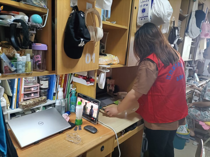 活动过程中,商学院学生会生活部以宿舍为服务点,随机抽取10间宿舍及公共生活区域进行清扫及安全隐患排查,学生会干部对学生宿舍内部及走廊、楼梯间等多处进行深度清洁,检查宿舍内部的违禁电器及设施损坏情况,针对损坏设施存在的安全隐患,做到及时记录并上报宿舍管理人员,为宿舍同学带来安全的校园生活体验。