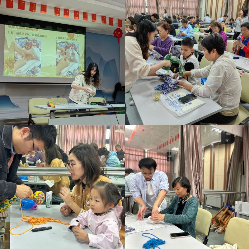 活动中,支部党员志愿者带领小朋友和老人一同制作艾草养生锤,让他们在动手操作中实现老有所乐,养成健康的生活习惯。党员志愿者还为小朋友们讲授重阳节知识,讲解尊老敬老的名言警句与故事,让小朋友们了解重阳节的由来、习俗,懂得“尊老爱老”是基本的社会公德和道德规范。小朋友们还用制作的艾草养生锤帮爷爷奶奶们捶背捶肩,送上精美的糕点和菊花茶,在行动中表达对长辈的感恩和祝福。