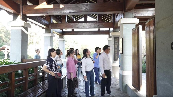全体教师到达老山森林公园“清风园”,以边走、边学、边交流、边分享的形式进行实境式学习。老师们在了解张孝祥的生平事迹后,被其文学作品中所传递的廉政精神所感动,不禁驻足学习,在与历史典故人物穿越时空的对话中深刻感受廉洁文化的熏陶。随后,老师们在“清风长廊”内围绕党风廉政建设展开了热烈的讨论。