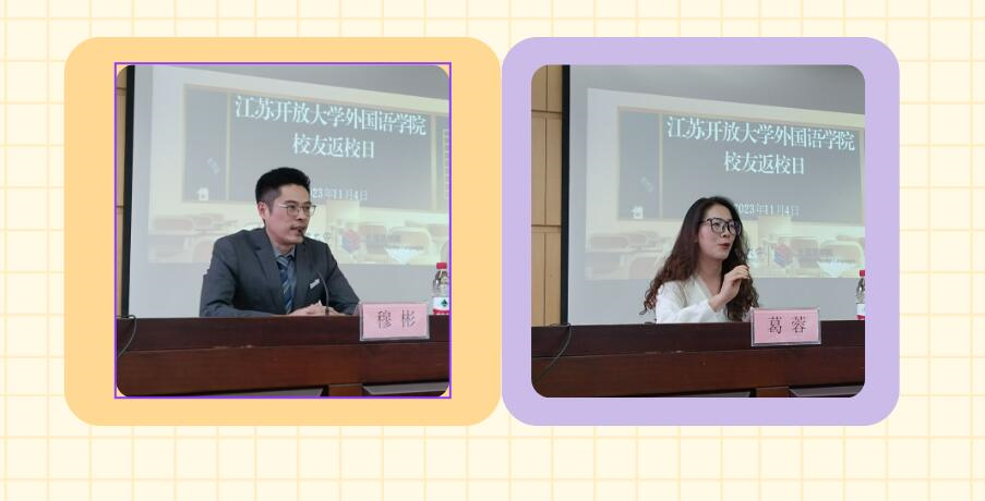 优秀校友代表2003级穆彬代表英语专业发言,分享了自己学生步入社会的状态以及工作经历,表示在母校学到的知识对他的工作帮助很大,表达了对母校感恩之情,并展望学校未来业绩长虹、蓬勃发展、越办越好。