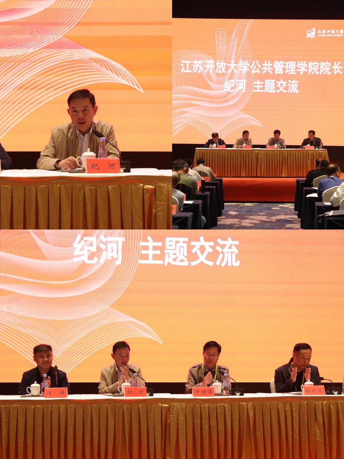 公共管理学院院长纪河作交流发言。他对沭阳开放大学的大力支持表示衷心感谢,对积极参会的各位课程负责人、课程导师表示热烈欢迎。他围绕线下教学实施和毕业论文实践教学做了详细介绍,并对接下来一段时间开放教育教学重点工作做督促指导。他指出,希望大家能以研讨会为契机,相互提高和发展,未来将教育重心放在如何优化线下教学实施、如何提高线下教学质量和如何更好培养本科层次人才等方面。