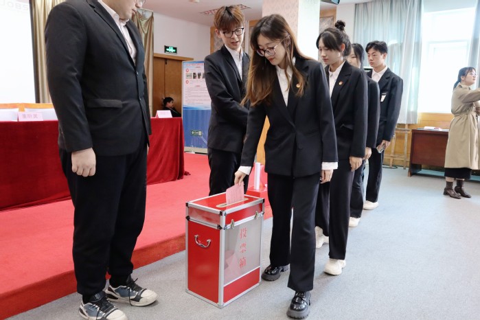 与会代表听取并审议通过大会选举办法后,委员候选人们分别从自身特点、职务认知、工作改进、未来发展等几个方面作竞选演说。演说完毕,开展无记名投票,选举产生了新一届学生会委员名单。商学院第九次学生代表大会在嘹亮的团歌声中落下帷幕。