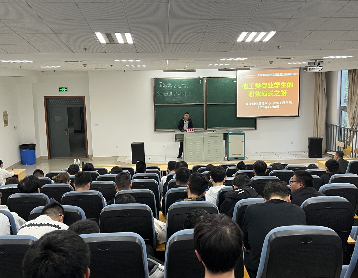 为加强就业引导,增强规划能力,11月8日下午,我校在应天校区教学楼203教室举办就业创业主题讲座。活动特邀中国电子科技集团第十四研究所一级管理专家、装备部副部长单东升作讲座。信息工程学院21级、22级学生代表聆听讲座。现场由学生工作处(就业创业指导中心)宋智华老师主持。