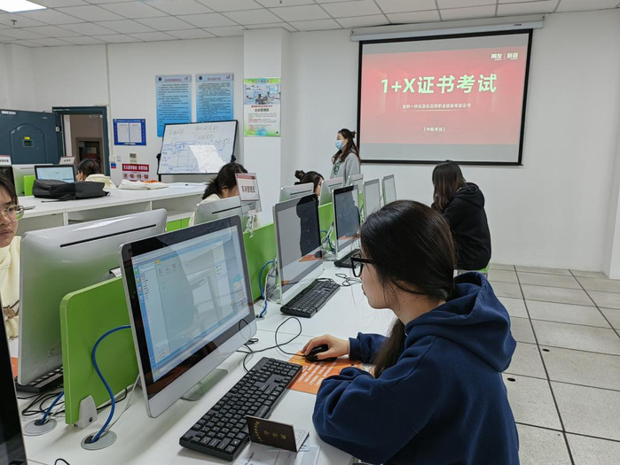 在10月初,会计系组织了2021级会计专业学生报名,为即将到来的考试做好准备。在接下来的4周,系部组织学生进行考证项目的练习,且进行了3次模拟测试,旨在提高他们的考试水平。11月初,会计系完成了1+x证书认证的全面准备工作,从报名环节到网上排考,再到准考证的打印,以及考场布置、监考安排和考务培训,并辅以详尽的考试工作实施方案和各类应急预案,确保整个考试过程有条不紊。在此过程中,实训中心也完成了三个考场120余台考试机位的测试工作,为考试的顺利进行提供了坚实保障。