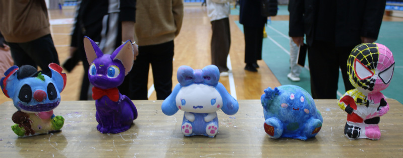 在高媛媛老师的指导下,现场50名学生自发分成小组,选择心仪的石膏娃娃和绘色工具,设计好图案,投入到天马行空的创作中。一支画笔,多种色彩,同学们创造出属于自己风格的独特作品;一个石膏像,一把心钥匙,同学们用作品诉说着独一无二的故事,打开真实自我的心门。尽管同学们都不太擅长画画,但小组成员互相交流和支持鼓励,最终,完成了一个个色彩丰富、五官灵动、栩栩如生的满意的作品。同学们笑着点评彼此的作品,并表示在活动中大家将内心的情感和体验转化成五彩缤纷的颜色,缓解了焦虑,放松了情绪,更好地蓄力加油,迎接期末学习生活。