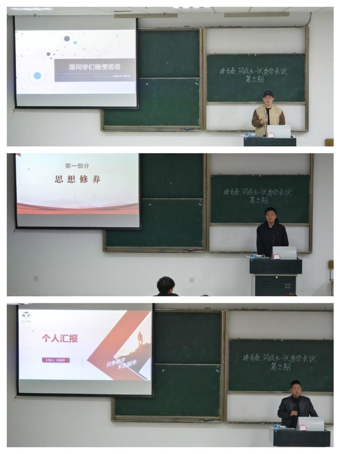 为加强学院学生国防教育,营造爱国强军的校园文化氛围,帮助学生规划学习目标,提早树立正确的转本意识,有效备战转本考试。11月14日,建筑工程学院在应天校区教学楼202阶梯教室举办“建青春,筑成长”——朋辈学堂“优秀学长说”第三期活动。活动邀请学院23届转本学生、现扬州大学建筑工程学院在读本科生赖志凯,以及来自21建筑智能化班和22城市轨道交通工程技术班的退役士兵蒋成龙、陈嘉伟,一同为23级140余名新生传递希望火炬,促进新生成长。建筑工程学院团总支副书记汪博恺出席本次活动,活动由宗昊主持。