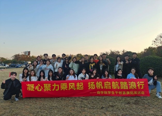 为加强学生干部队伍建设,提高学生综合素质和团队协作能力,增强学生干部的责任心和凝聚力,2023年11月19日下午,商学院于南京钟山体育公园举办“凝心聚力乘风起 扬帆起航踏浪行”学生干部素质拓展活动,辅导员周皖宁和31位学生干部参与素质拓展活动。