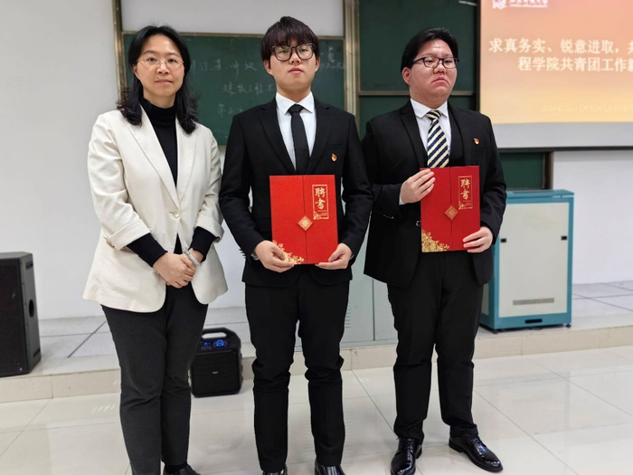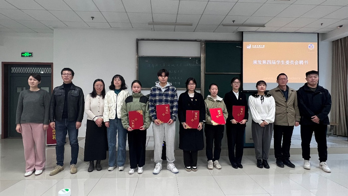 随后徐亚和各位辅导员一同为第四届团总支委员颁发证书,感谢他们一年来为学院共青团工作开展和服务团员和青年作出的贡献。