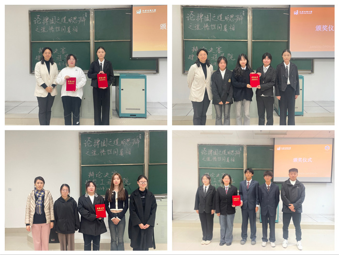 经过紧张的初赛选拔,最终四支队伍脱颖而出,顺利进入学院决赛,本次决赛分为上下半场。上半场23建设工程管理班与23建筑智能化工程技术班就“预防电诈应以自我教育为主还是以制度约束为主”展开激烈辩论,正方从自我教育是内化于心的教育方法着手阐述预防电诈中自我意识的重要性,反方从什么是制度以及制度的强制性和约束力入手阐述了预防电诈中法律法规的重要性。下半场23建筑室内设计1班与23建筑室内设计2班就“网络使人更亲近还是更疏远”展开激烈辩论,正方从网络的便捷性入手深入探讨了网络使人更亲近,反方则从网络的虚拟性入手深刻阐释网络使人更疏远。双方辩手唇枪舌战、妙语连珠、有理有据,为在场观赛师生们带来一场精彩的思维碰撞,经过精彩的角逐,最终23建设工程管理班、23建筑室内设计2班、23建筑室内设计1班分别斩获冠亚季军,林丹妮和徐珑奕获得最佳辩手。