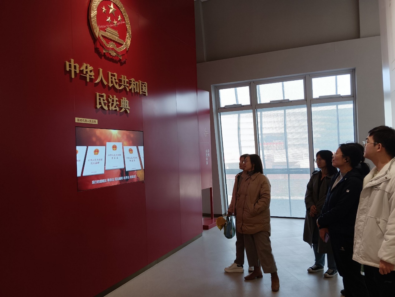 旗阵广场上,由100面红旗组成的昂扬旗阵迎风招展,旗杆高度为12.4米,寓意12月4日的“国家宪法日”。沿着直径82米的圆形廊道向前,随着60个重大法治事件的逐一展示,中国共产党百年法治历程在景墙上徐徐展开。宪法宣传教育展是南京宪法公园的核心,为全体教职工全景展示了中国共产党带领人民寻宪、制宪、修宪、奉宪的伟大历史进程,在浓厚的宪法宣传氛围中,深刻体会宪法在中国发展进程中的重要地位。