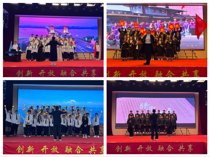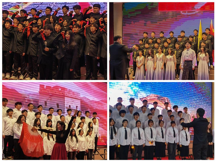 本次参赛的是学院2023级全体班级,共12支队伍。每支队伍选取一首歌曲进行展示,各参赛队伍特色鲜明的服装、丰富新颖的表演形式、气势磅礴的歌声、奋发向上的精神风貌向观众们呈现了一场视听盛宴。随着《保卫黄河》《星辰大海》《国家》《如愿》《少年中国说》《奔跑》等一首首经典歌曲唱响,唱出了中华民族自强不息的伟大精神,点燃了在场所有师生的爱国热情,现场掌声雷动,热血沸腾!