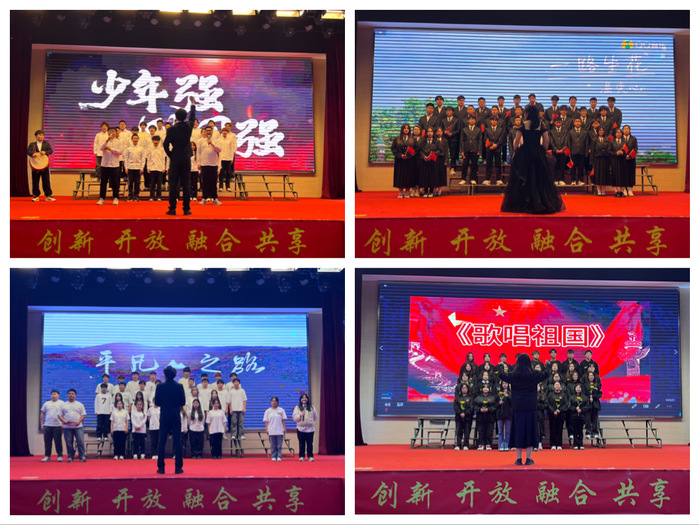 建工学子们在舞台上尽情歌唱,用歌声诠释爱党爱国的热忱之情。全体师生收获了美好的瞬间,共同感受青年学子们奋发向上的力量。每一首歌曲都承载着同学们对祖国的眷恋之情,展示了爱国主题在不同音乐风格中的表达方式,同学们还创造性地融合了朗诵、舞蹈等多种表演形式使得表演更加生动,充分展现了新时代大学生积极向上、朝气蓬勃、奋发进取的精神风貌,引发现场观众的强烈共鸣。
